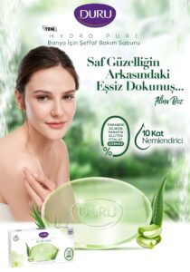 Sakura Çiçeği, Aloe Vera ve Micellar çeşitleri satışa çıkan yeni Duru Hydro Pure Şeffaf Bakım Sabunu reklam filminde başarılı oyuncu Alina Boz, Aloe Vera’lı Duru’nun cildini nazikçe temizlediğine vurgu yapıyor. Klasik banyo sabunlarına göre 10 kat fazla nemlendirici içeren Duru Hydro Pure Şeffaf Bakım Sabunu; paraben, silikon, parafin, glüten ve fitalat içermiyor ve bitkisel özlerden üretilen formülü ile vegan ürün tercih eden tüketicilerinin ihtiyaçlarına cevap veriyor.