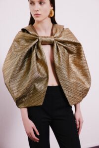 Gökay Gündoğdu koleksiyonda bu kültürel ögelere atıfta bulunarak, minimal estetik yaklaşımındaki imzasını ve güçlü formlarının kadına verdiği mesajını bir kez daha gözler önüne seriyor, aynı zamanda köklerinin gerçek hayata daha bağlı modern bir versiyonunu da ortaya çıkarıyor.