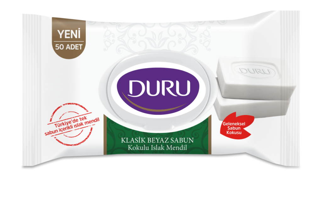 Duru markasıyla yarım asırdan fazla süredir yüksek kalitede katı sabun, sıvı sabun, granül sabun, duş jeli, kolonya ve saç bakım ürünleri üreten Evyap, Duru markalı ürünlerini bugün 78 ülkeye ihraç ediyor. Duru, tüketici ihtiyaç ve beklentilerine yenilikçi ürünlerle cevap vermeye devam ediyor. Duru’nun yeni ürünü Klasik Beyaz Sabun Kokulu Islak Mendil, Türkiye’de sabun içerikli tek ıslak mendil! Temizlik