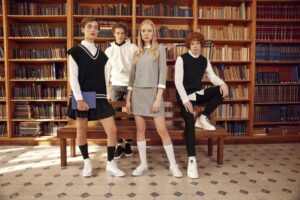 Jeanler ile mini kareli gömlekler, triko süveterler ve kazaklar kombinlenirken; kapüşonlu sweatshirtler, pileli etek ve kumaş pantolon gibi casual parçalarla bir araya getiriliyor. Koleksiyon gençlere yarı klasik ve zamansız bir hava katıyor. Bunların yanı sıra tulumlar ve sweatshirt elbiseler bu yılın modasını okullara taşıyor. Kapüşonlu olarak tasarlanan, mevsimin vazgeçilmezi deri ceketler kolej tarzının tamamlayıcısı oluyor. Şıklık ve konforu bir arada sevenlerin vazgeçilmezi, ütü gerektirmeyen jakarlı kumaş bu sezonun ürünlerinde sıkça karşımıza çıkıyor.