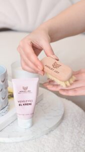 Tam da bu dönem, tesadüfler zinciri, bir vesile ile Umre’ye gittim ki bu ilk defa Metinsiz gittiğim bir seyahatti. Biz Metin ile birlikte gezmekten ve yeni yerler keşfetmek çok keyif alan bir çiftiz en başından beri ama bu sefer Metin’in programına uymadı ama içimden bir ses de mutlaka gitmemi söylüyordu, Metin de beni bu keşfi yapmam yönünde teşvik edince gittim; iyi ki de gitmişim. Yine ilahi bir tesadüf, uçakta yanıma Suna Dumankaya denk geldi. Onunla da bu doğal, bitkisel içerikler hakkında sohbet etme imkanım oldu. Seyahatim sırasında önümde bir kadın bayıldı; hemen yardımına koştum sonra kadın benimle ilgilendi, sohbet ettik ve beni lokalde iyi bilinen çok özel biriyle tanıştırdı. Bu kişi de maneviyatı çok yüksek bir insandı ve bana kalbinin ekmeğini yiyeceksin, ruhunun temizliğini koru; elinde bir hazine var ve onu hayata geçir. 7 sene sonra dünya markası olacaksın, sizin kültürünüzde Mevlana var; aldığını ver ve paylaş dedi. Hiç unutamıyorum; hala sözleri kulaklarımda… Bunların hepsi birbirini tamamlayan tesadüfler oldu. Türkiye’ye döner dönmez tamam dedim ne yapmak istediğime karar verdim; bu anlamda bitkisel ve doğal içeriklere ihtiyaç duyanlar için bilgi birikimimi ve tecrübelerimi herkese aktaracağım., Ulaşılabilir, uygun fiyatla en kaliteli içerikler olacak fikriyle yola çıktık ve kişisel bir marka ismi olmasını istemediğim ve kulağımıza da çok iyi geldiği için markamın adını Ashley Joy olarak belirleyerek bu serüvene başladık ve bugünlere geldik. Şu an 70.000 adet satışımız var. Harvey Nichols, özel satış noktaları ve pek çok online mecrada yer alıyoruz. İyilik paylaşınca çoğalıyor; bir de hiçbir zaman daha fazla para kazanmak için kaliteyi bozma taraftarı olmadım. Olması gereken neyse hep bu şekilde Ashley Joy’a yatırım yaptım; öyle çeşitliliğimi de markamın dünyasını da büyüttüm. 30’dan fazla ürün çeşidimiz bulunuyor ve hayallerimden vazgeçmeden, konumda kendimi daha da geliştirerek devam ediyorum. Çok yakında yurt dışı projelerimiz var; ilk günkü heyecanımız, şevkimiz ve işimize olan sevgimizle çalışıyor, aldığımız güzel yorumlarla daha da motive oluyoruz. Logomuzdan da bahsedecek olursam ki bunu çok merak eden ve soran oluyor; sol bileğimdeki dövmeden ilham alarak bu logoyu yarattık. Çocuklarımı, eşimi, ailemi simgeleyen bir dövme yaptırmak istiyordum, aklımda olan fikri özel olarak tasarlattım. Dövmemde eşimin, çocuklarımın baş harfleri yer alıyor. Sırt sırta oğullarımın baş harfleri olan B, tepede eşim Metin’in baş harfi olan M (hep başımızın üstünde yeri vardır; o bizim baş tacımız) bulunuyor. Dışarıdan bakıldığında aynı zamanda kelebek gibi gözüküyor. Yani bu markanın özünde, aşk var, sevgi var, beni ben yapan her şey var. Bu logo sevgiyi, aşkı, emeği simgeliyor.