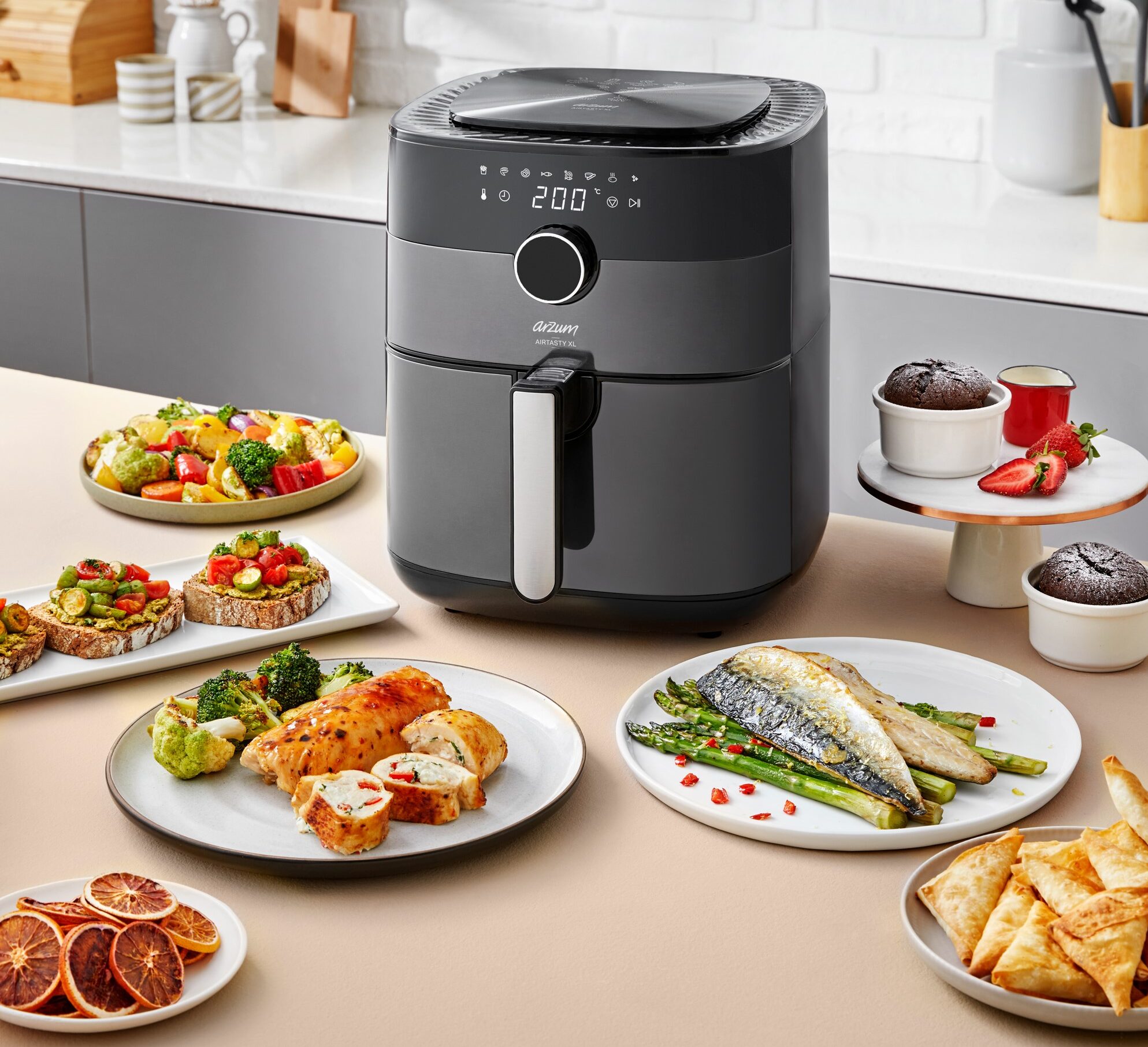 Tasarımlarıyla yemek pişirmeyi keyfe dönüştüren Arzum, Airtasty XL Air Fryer Sıcak Hava Fritözü ile daha az yağ kullanarak her öğünde maksimum lezzeti yakalarken, kullanım kolaylığı ile mutfakta konfor sunuyor.