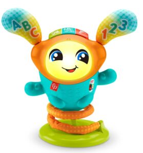 Fisher-Price müzikli eğitici oyuncağı Sevimli DJ ile bebeğinizin oyun saatini gerçek bir partiye dönüştürüyor. Dans edebilen interaktif oyun arkadaşı, düğmeye basıldığında rengarenk ışıklar ve yay destekli zıplama hareketiyle canlanıyor ve 75’ten fazla şarkı, ses ve cümle ile bebeğinize harfleri, saymayı, renkleri ve çok daha fazlasını öğretiyor. Bebeklerin ve yürüme çağındaki çocukların ince motor becerilerinin gelişmesine yardımcı olan oyuncak, yaratıcı becerilerinin de ilerlemesine destek oluyor.