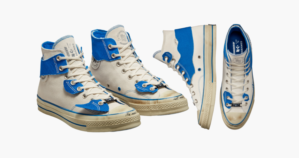 Converse x ADER ERROR kapsül koleksiyonunda yer alan Chuck 70, geleceğe bakarken geçmişten ve markanın ikonik kimliğinden detaylar içeriyor. Chuck 70’in süet üst kısmı, eskitme detaylarıyla estetiğin ruhunu yakalamak için kanvas çıkarılabilir kaplamalara detaylara sahiptir. İkonik modelin her iki tekinin burun kısmına işlenmiş, ADER ERROR’un “the new is not new” slogan metni, her iki markanın ortak dilini yansıtırken, özel ayakkabı bağı klipsleri, markalı plaka ve şeffaf ADER ERROR dış taban ise tasarımı tamamlıyor.