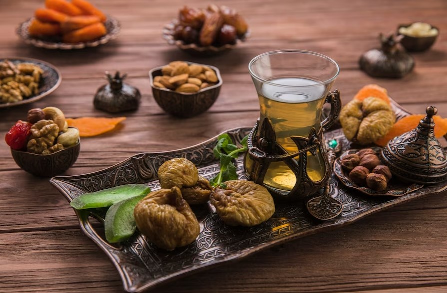 Sahur ve iftarda basit şeker içeriği yüksek besinler kan şekerini hızla yükseltir ve açlığın yoğun bir şekilde yaşanmasına neden olur. Bunun yerine, kompleks karbonhidratlardan tam tahıllı, kepek, çavdar veya tam buğday unundan yapılmış ekmek, esmer pirinç, kepekli makarna gibi besinler, sebze ve meyveler uzun süre tok kalmaya yardımcı olur. Çok tuzlu besinler de sıvı elektrolit dengesini bozacağı için gün içerisinde susama hissini artıracaktır.