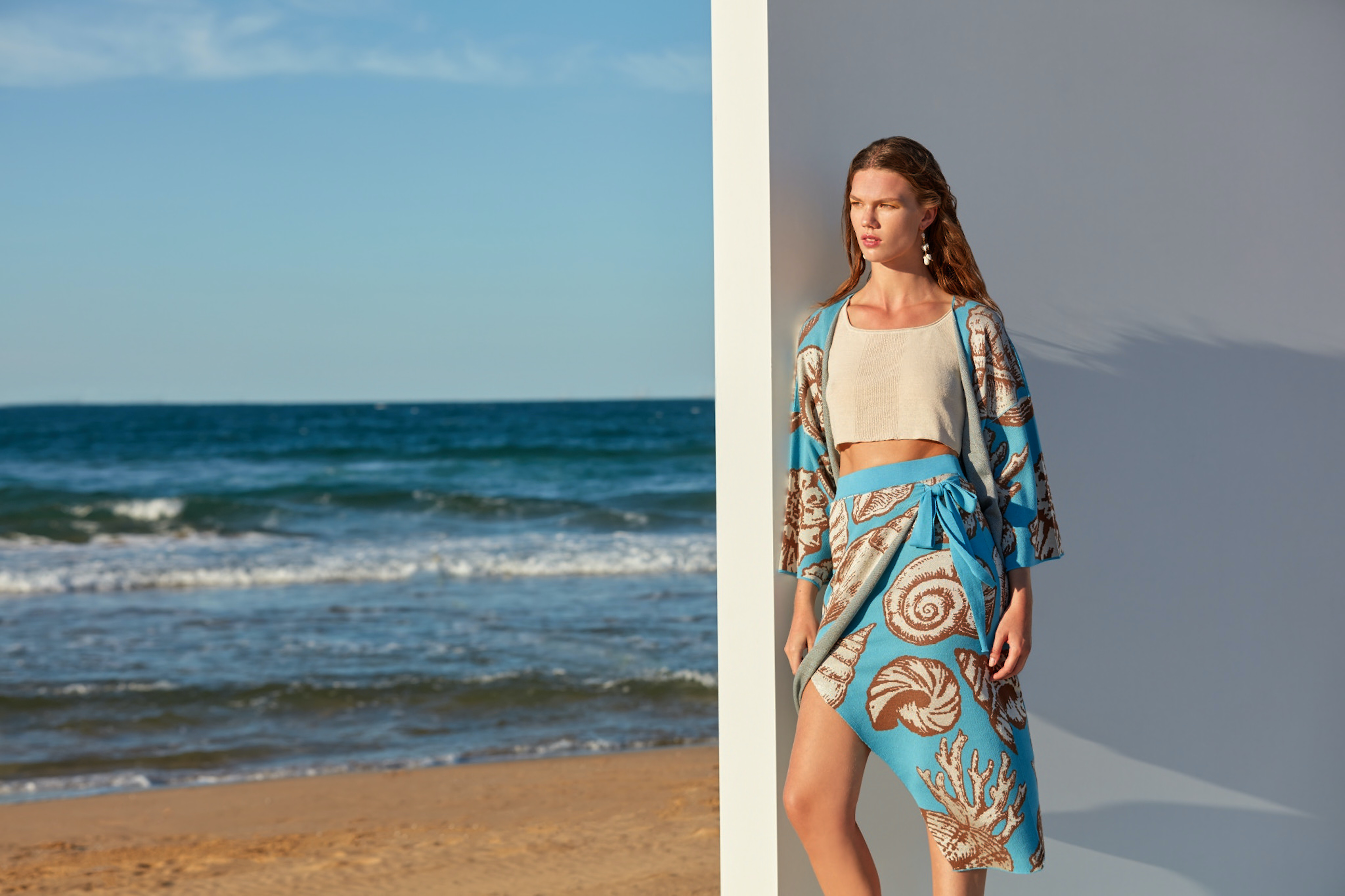 Kaliteli ve doğal malzemelerle tasarlanan zamansız parçalar, incecik triko dokuması ile nefes alan ve bir tüy kadar hafif yapısıyla yazın hem sahilde hem şehirde triko konforunu yaşatıyor. Deniz kabuklarının, sıcak yazı hissettiren tropik esintilerinin yer aldığı parçalarda, gökyüzü mavisi, derin okyanus renkleri, mercan kırmızısı gibi hem kontrast hem de ekru gibi dingin renkler kullanılmış. Yazın triko konforunu yaşatan Knitss’in yaz koleksiyonunda keten şort, etek ve crop üstler, hırka takımları ve kimonolar gibi kadınların vazgeçemeyeceği parçalar yer alıyor.