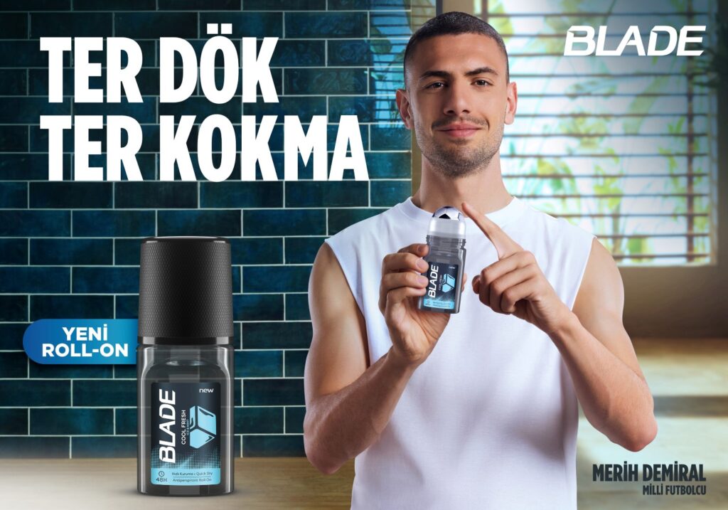 Blade Roll-on serisinin reklam yüzü ise, bir önceki reklam kampanyasında olduğu gibi Türkiye’yi uluslararası arenada başarıyla temsil eden milli futbolcu Merih Demiral oldu. Demiral, Blade roll-on serisinin de reklam kampanyasında kameraların karşısına geçti. Blade’in dinamik ve başarılı marka kimliğini temsil eden ünlü futbolcu bu yıl da dünyanın daha iyi bir yer olması için “ter dök, ter kokma” demeye devam edecek.