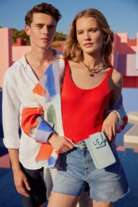 Sıcak kıyılardan ilham alınan yaz ruhu, mavi, kırmızı ve beyaz tonlardaki tasarımlar ve yazın zarif silüetlerinde hayat buluyor. Çini ve fırça darbelerinden esinlenen desenlerle güçlenen şortlu takımlar, volan detaylı elbiseler, çizgi oyunlarıyla zenginleşen triko, gömlek ve poplin elbiseler Beymen Club kadınının şık tarzına ferah bir dokunuş katıyor.