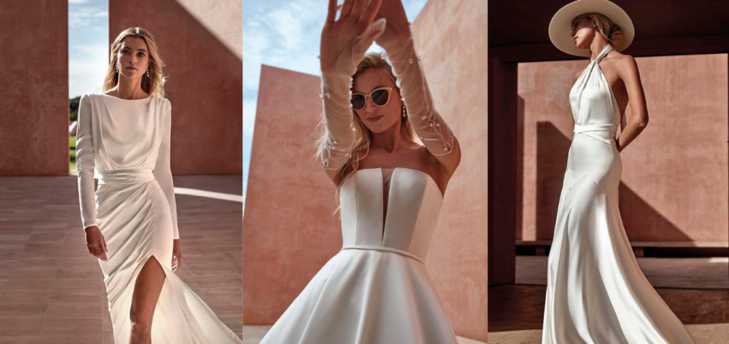 Pronovias The Journey 2024 ön koleksiyonu yaratıcı yeni kumaşların kusursuz tasarımlar ile buluşmasıyla inovatif bir yaklaşım sunuyor. Gelinliklerde ilk defa kullanılan dikkat çekici kesim detayları dikkat çekiyor. Yeni dekolteler ve asimetrik tasarımlar fütüristik bir ifade sunuyor.