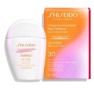 Yaşlanma karşıtı Shiseido Urban Environment Age Defense Oil-free SPF30, yağsız ve günlük kullanıma uygun yapısıyla cildi UV ışınlarına ve çevre kirliliğine karşı koruyor. Ciltle kusursuz bir şekilde bütünleşerek sıkı, parlak ve nemli bir görünüm sunuyor. Hafif dokusu sayesinde makyaj öncesi kolaylıkla kullanılıyor. Yaşlanma belirtilerini en aza indiriyor ve leke oluşumu engelliyor. Sun Dual Care teknolojisi, cildi güzelleştirmek için UVA ışınlarının bir kısmını yararlı güzellik ışınlarına dönüştürüyor.