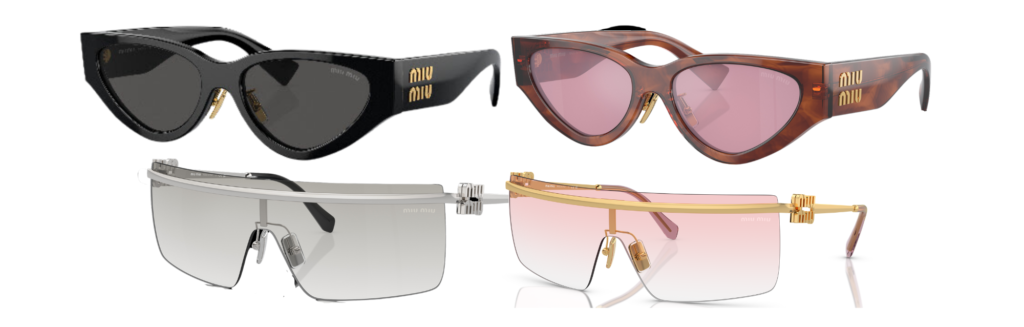 Belirgin çizgilerle ve şık gölgelendirme teknikleriyle güçlendirilmiş, kedi gözü tasarıma sahip asetat güneş modelinin cesur sapları Miu Miu’nun dikey logosuyla kişiselleştirilmiştir. Tobacco, garnet ve ıvy tonlarındaki yeni çizgili renk seçenekleri ile siyah, talc ve bal tortu gibi daha klasik tonlarda da moda severlerin beğenisine sunuluyor.