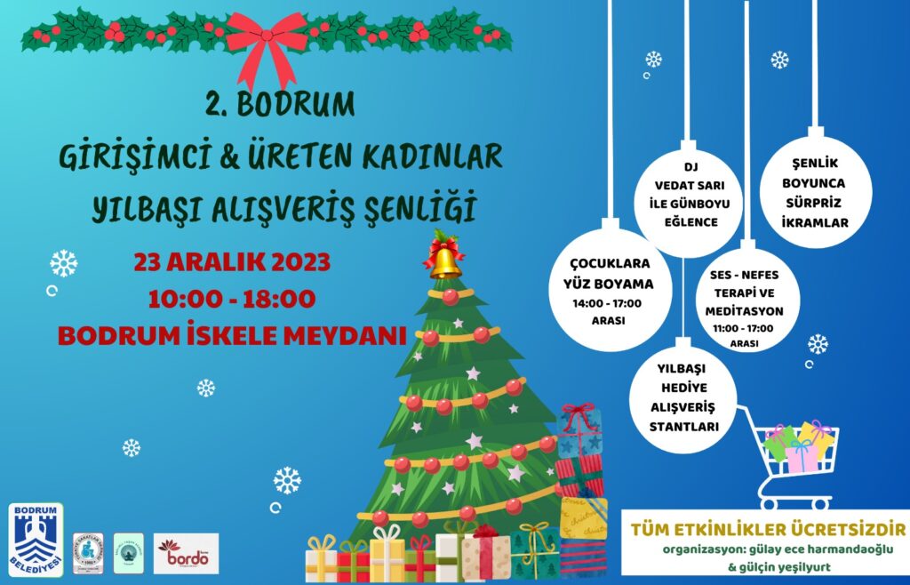 Bodrum Girişimci & Gelişen Kadınlar 2. Yılbaşı Alışveriş Şenliği 23 Aralık’ta Bodrum İskele Meydanı’nda ziyaretçilerini ağırlayacak.