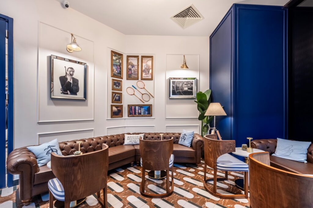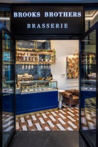 Brooks Brothers Brasserie’nin tasarım detaylarında Amerikan kültürü, el işçiliği ve kalite ön planda tutuluyor. Mağazanın iç mekanında Brooks Brothers laciverti, altın ve gri detaylar, deri ve mermer kullanımıyla markanın estetik anlayışına vurgu yapılıyor. Ayrıca tabaklardan bardaklara kadar tüm detaylar da marka kimliğiyle bütünleşmiş tasarımlara sahip. Menüde özel dem bitki çayları, geniş kahve seçenekleri ve günlük kurgulanan özgün tatlı seçenekleri bulunuyor. İleri teknoloji aletleriyle donatılmış mutfağında hazırlanan lezzet dolu seçenekler içerisinde özenle tabaklanmış başlangıçlar, taze ve sağlıklı kaseler, besin değeri yüksek salatalar, Viyana Şinitzel, Fette, ağır ateşte Brisket gibi özel ana yemekler dikkat çekiyor. Ayrıca geniş kokteyl menüsü ile zengin içecek seçenekleri de öne çıkıyor.