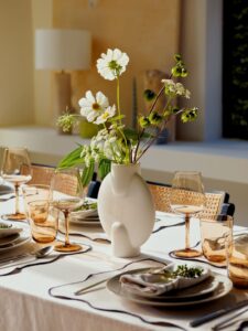 H&M HOME’un ikonik safari yemek sandalyesi şık bir sofra oluşturmak için harika bir seçenek sunuyor. Renkli bir görünüm için tercih edebileceğiniz yeşil renkli masa örtüsü, eşsiz detaylı büyük tabaklar, derin kaseler, şeffaf görünüme sahip kahve tonlarındaki kadeh ve su bardakları, siyah kenarlı servis altıkları ve rengarenk, sezona uygun peçeteler ile bahar sofrası şıklığını yakalamak mümkün.