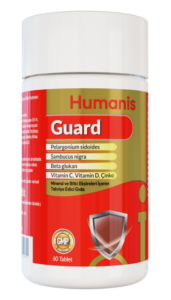 Humanis Guard; içerisinde bulunan Vitamin C, Çinko, Vitamin D3, Beta Glukan, Pellargonium Sidoides (Afrika Sardunyası), Sambucus Nigra (Kara Mürver) ve Çörek Otu ile bağışıklığınızın desteklenmesine yardımcı olur.
