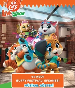 Tüm dünyada izlenme rekorları kıran ve ülkemizde çocuklar tarafından büyük beğeniyle takip edilen 44 Kedi müzikal sahne gösterileriyle Fişekhane’de çocuklarla buluşacak. Çocuklar çok sevdikleri Buffy Kedileri sahnede canlı olarak izleme fırsatına sahip olacaklar.Lampo, Milady, Pilou ve Köfte isimli sevimli kediler patikulede maceralarıyla yine çok güldürecek yine çok eğlendirecekler.