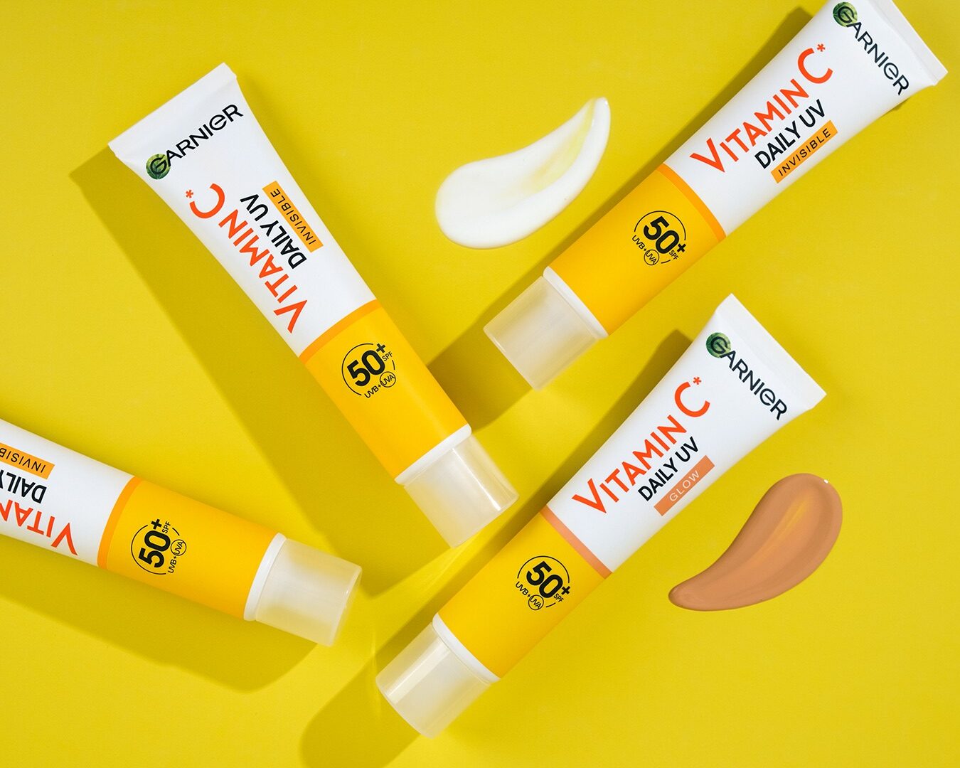 Güneş hassasiyetinden korunurken, leke görünümünü azaltmak ve ışıltılı bir cilde sahip olmak Garnier C Vitamini Parlak Günlük Güneş