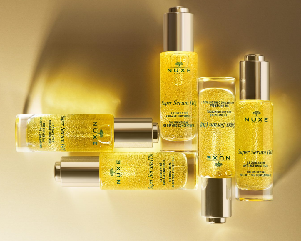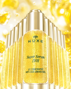 Nuxe, silikon içermeyen yüksek performanslı vegan formülüyle cilt bakımında devrim yaratıyor. Hyalüronik asit ve binlerce botanik mikro yağ küreciği ile zenginleştirilen Super Serum [10] ve Super Serum [10] Eye, cildinizi anında daha parlak, dolgun ve pürüzsüz hale getirir. İçeriğinde bulunan doğal hyalüronik asit, niasinamid ve patentli botanik kompleksi sayesinde cildin elastikiyetini arttırırken yaşlanmış hücrelerin gençlik mekanizmalarını harekete geçirir ve koyu lekeleri düzenler.