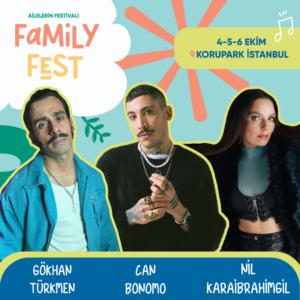 Family Fest, Türkiye’nin ilk aile festivali olarak 4-5-6 Ekim tarihlerinde ünlü oyuncu Müge Boz’un ev sahipliğinde Korupark İstanbul’da ailelerle buluşuyor. 3-12 yaş çocuklar ve ailelere yönelik düzenlenen festivalde farklı ilgi alanlarına yönelik atölyeler, bedensel aktivite alanları, konserler, söyleşiler, neşeli oyun ve eğlenceler yer alıyor. 3 gün boyunca sürecek festivalde Nil Karaibrahimgil, Can Bonomo ve Gökhan Türkmen de en sevilen şarkılarıyla festivale katılacak.