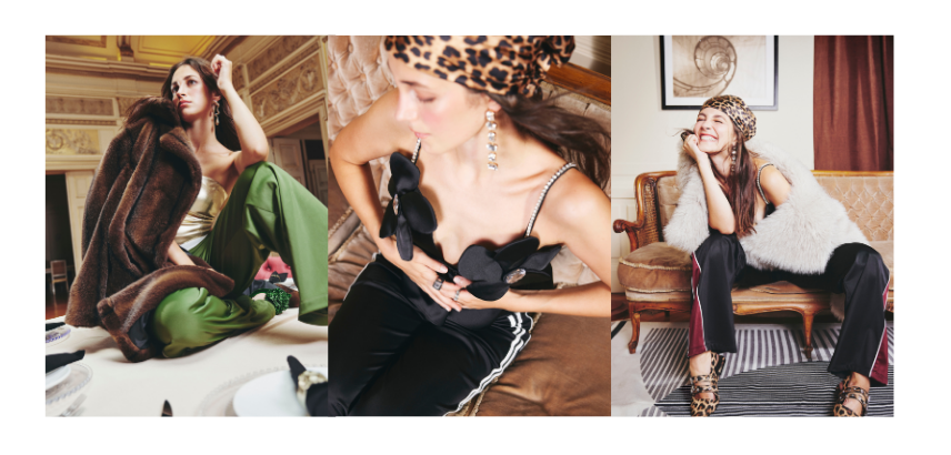Sezonun mob wife stilinden ilham alan tema kapsamında, asimetrik yakalı bluzlar, hacimli kürk detayları ve kadifelerle dolu bir şıklık sunuluyor. Bordo, siyah, antrasit ve ekru tonlarının hâkim olduğu tema; dantel, suni krokodil deri ve animal print gibi zengin kumaş seçenekleriyle göz alıcı kombinler yaratmanızı sağlıyor.