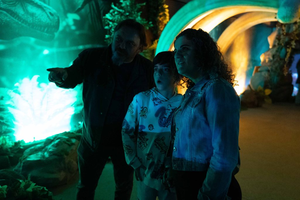 Giriş alanında kurulu “Dino ile selfie” ve “animatik köpeği sev/besle” gibi ekranlar ile küçükler eğlenceli dakikalar geçiriyor. Işık tünelinden geçen çocuklar, çağlar öncesine, holografik dinozorlar dünyasına yolculuk yapıyor. Çocuklar bu büyüleyici evrende, dinozor türlerini keşfederken, kum havuzunda gizlenmiş dinozor fosillerini gün yüzüne çıkarmanın heyecanını yaşayabiliyor.