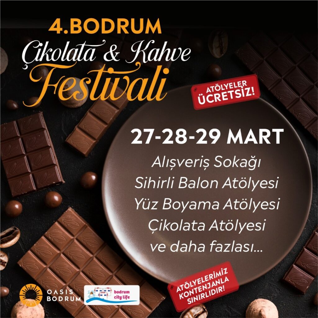 Bodrum’un geleneksel ilk ve tek Çikolata & Kahve Festivali 27-29 Mart 2025 tarihlerinde Bodrum Oasis Alışveriş Merkezi’nde kahve ve çikolata severleri ile buluşuyor.