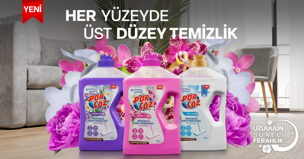 Ev temizliğinde farklı ihtiyaçlara yönelik çözümler sunan Porçöz, kullanıcılarının hayatındaki yerini genişletiyor. Porçöz, tüketicilere sunduğu yeni Porçöz Parfümlü Yüzey Temizleyici serisi ile temizlikte güçlü formüller sunmaya ve kullanıcı beklentilerini en üst düzeyde karşılamaya devam ediyor!